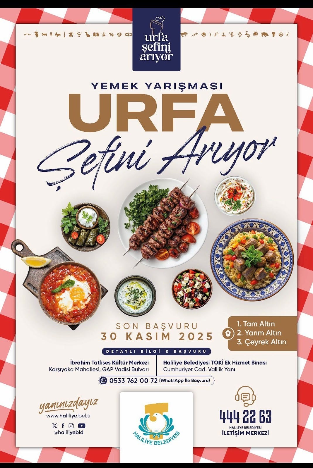 SEECO Projesi desteğiyle kurulan Haliliye Gastronomi Eğitim Merkezi’nde, yöresel tatların yaşatılması ve gastronomi turizmine katkı sunulması amacıyla “Urfa Şefini Arıyor” adlı yemek yarışması düzenleniyor. Şanlıurfa mutfağının zengin lezzetlerini tanıtmak, geleneksel yemek kültürünü korumak ve gastronomi turizmine değer katmak amacıyla Aralık ayında düzenlenecek yarışmada katılımcılar, jüri önünde hazırlayacakları geleneksel Urfa yemekleriyle hünerlerini sergileyecek ve yarışma sonunda dereceye giren katılımcılara çeşitli ödüller verilecek.