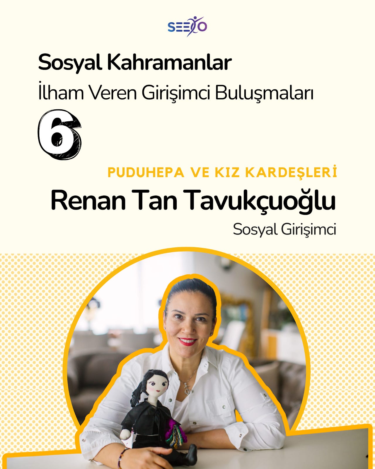 İlham veren girişimci sohbetleri serimizde Kasım ayında Puduhepa ve Kız Kardeşleri’nin kurucusu Renan Tan Tavukçuoğlu’nu ağırladık. Kendisi de bir sosyal girişimci olan ve projesiyle 97 kadına istihdam sağlayan Renan Hanım, sosyal girişimin geliriyle 155 kız çocuğunun eğitimine katkıda bulunuyor. Girişimcilerimize kurumsal hayattan sonra 2018’de kurduğu girişimindeki tecrübelerini aktaran Renan Hanım, ekip kurmaktan kurumsal hafıza oluşturmaya, topluluk olmaktan pazarlama stratejilerine kadar pek çok noktaya değindi.
